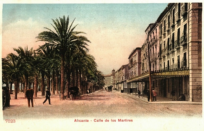 Alicante, calle de los Mártires. A la derecha, el Hotel Iborra y su distinguido restaurante. Fondos del Museo Comerical de Alicante y provincia