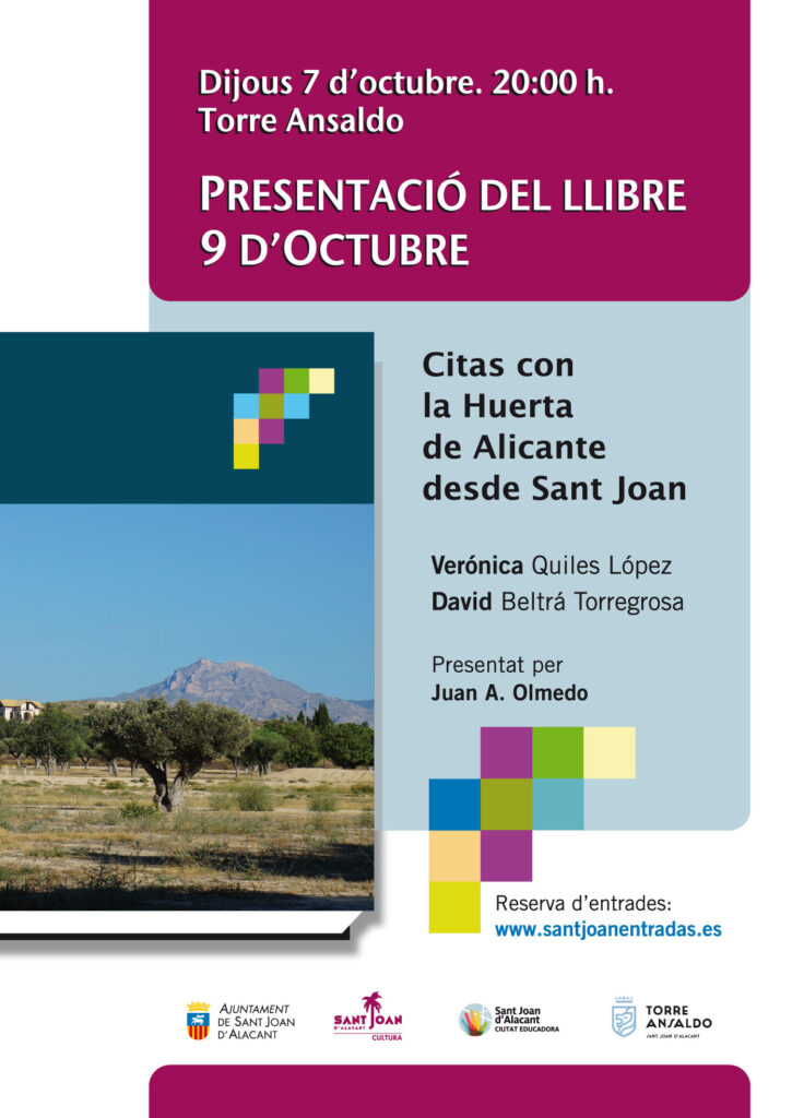 7 de octubre a las 20:00 en Torre Ansaldo, Sant Joan d’Alacant, presentación del libro ‘Citas con la Huerta de Alicante desde Sant Joan