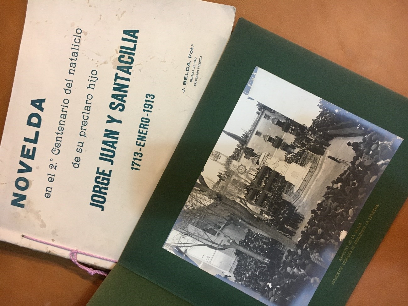BELDA, J. (1913), “Novelda en el 2º Centenario del Natalicio de su preclaro hijo Jorge Juan y Santacilia 1713-enero-1913”. Medalla de Oro Exposición Valencia. Novelda, pp. 14 (40 láminas).