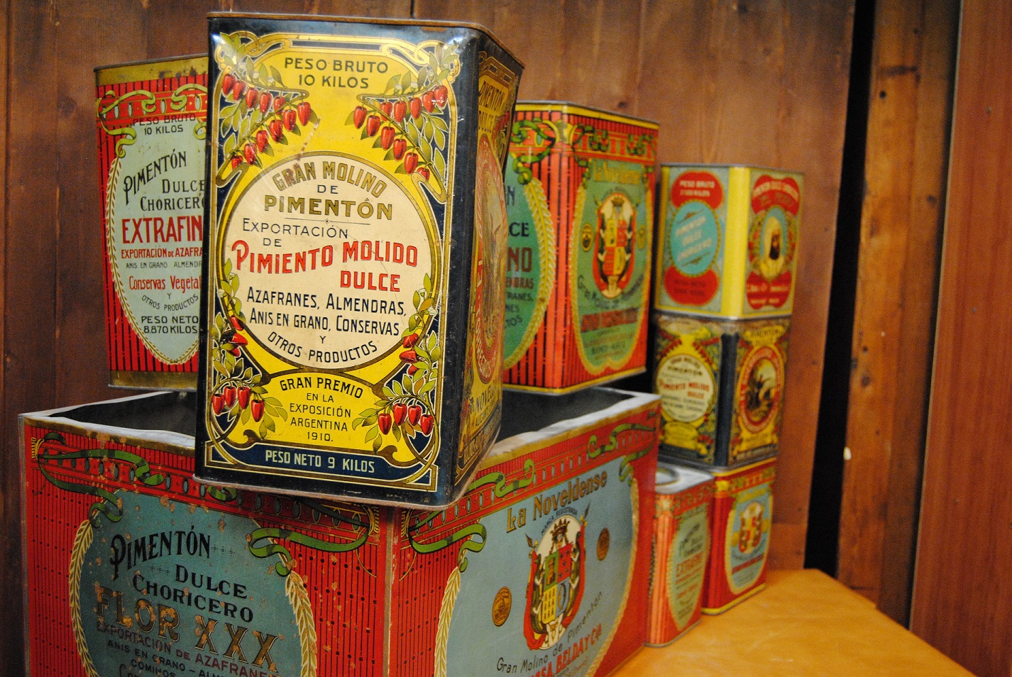 Envases litográficos de pimentón de la familia Torregrosa. Colección Museo Comercial