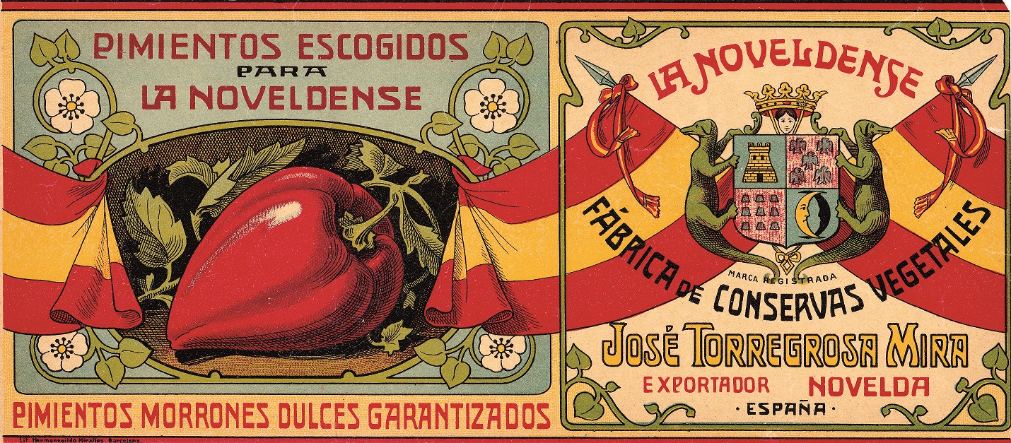 Etiqueta de conservas vegetales de pimientos La Noveldense. José Torregrosa Mira. Colección Museo Comercial