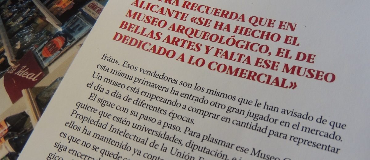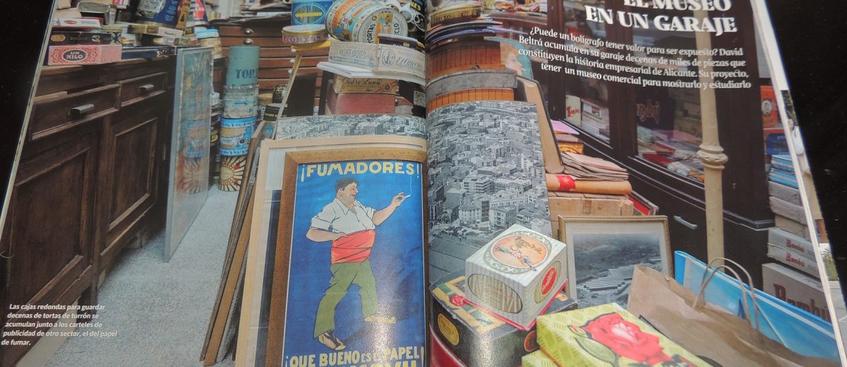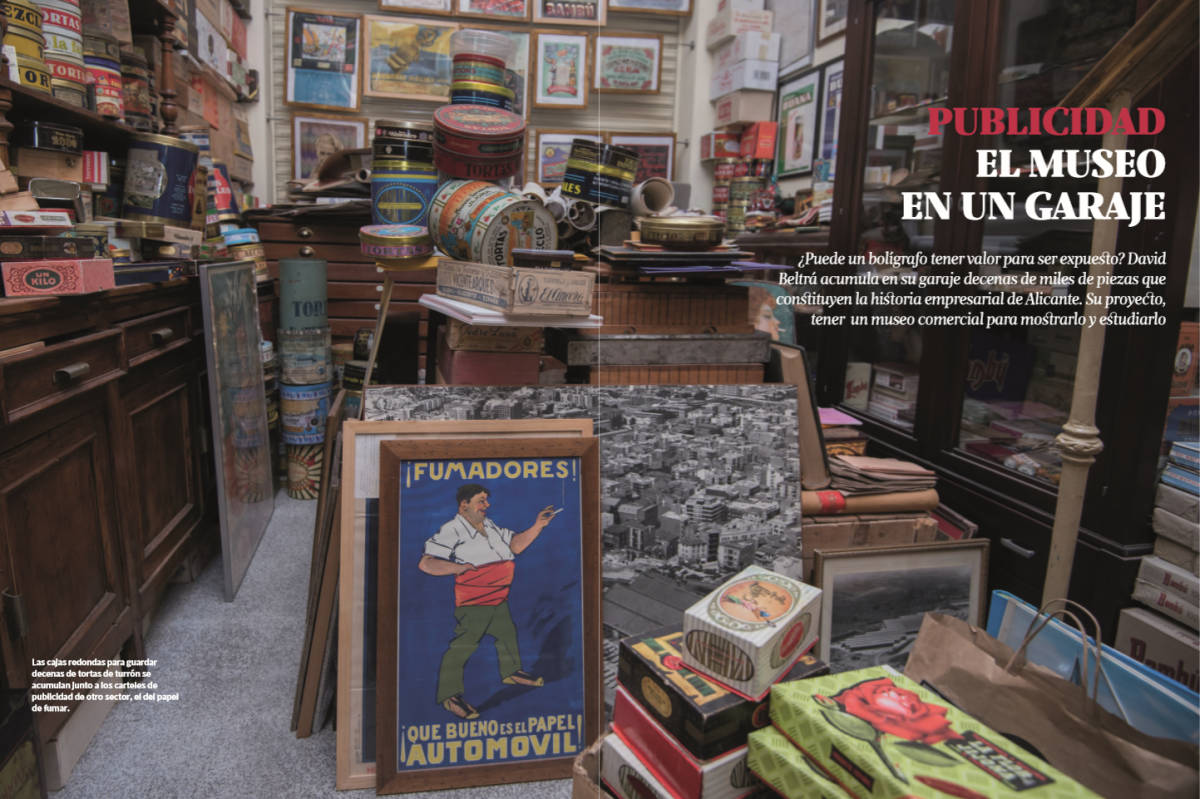 El suyo es un museo sin espacio oficial, que podría servir como historia de la publicidad o de etnología. Su ambición es que pronto lo tenga. De momento, en su ciudad están avanzadas las conversaciones para poder ocupar un lugar en el que desplegar las piezas de carácter más local. Pero su idea es que eso no se quede solo ahí. Le gustaría que en Alicante se mostraran todas esas piezas que conformaron ese pasado industrial. Aunque él prefiere referirse a su proyecto como el Museo Comercial, uno que rinde homenaje al «carácter fenicio» que, como recalca, históricamente ha tenido la zona.