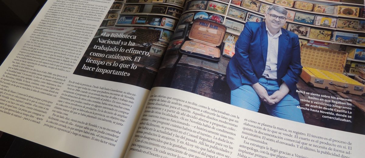 Aquello lo leyó Beltrá un día hacia el año 2000, una época en la que se había centrado en recopilar piezas originales de la prensa de su localidad natal. Y le encantó. La idea de un museo comercial se ha desarrollado en otras capitales, explica, como Salamanca, Sevilla, Barcelona y Melilla. Se hacía, continúa, como «un lugar donde exponer lo que se comercializaba y se hacía en zonas donde era difícil acceder, en las que se mezclaba la idea de comercializar con la de mostrar».