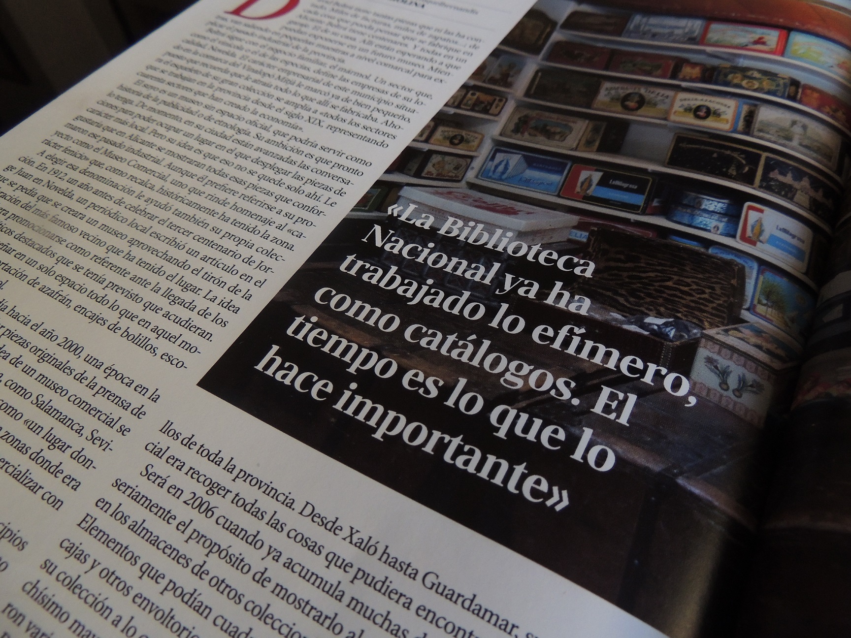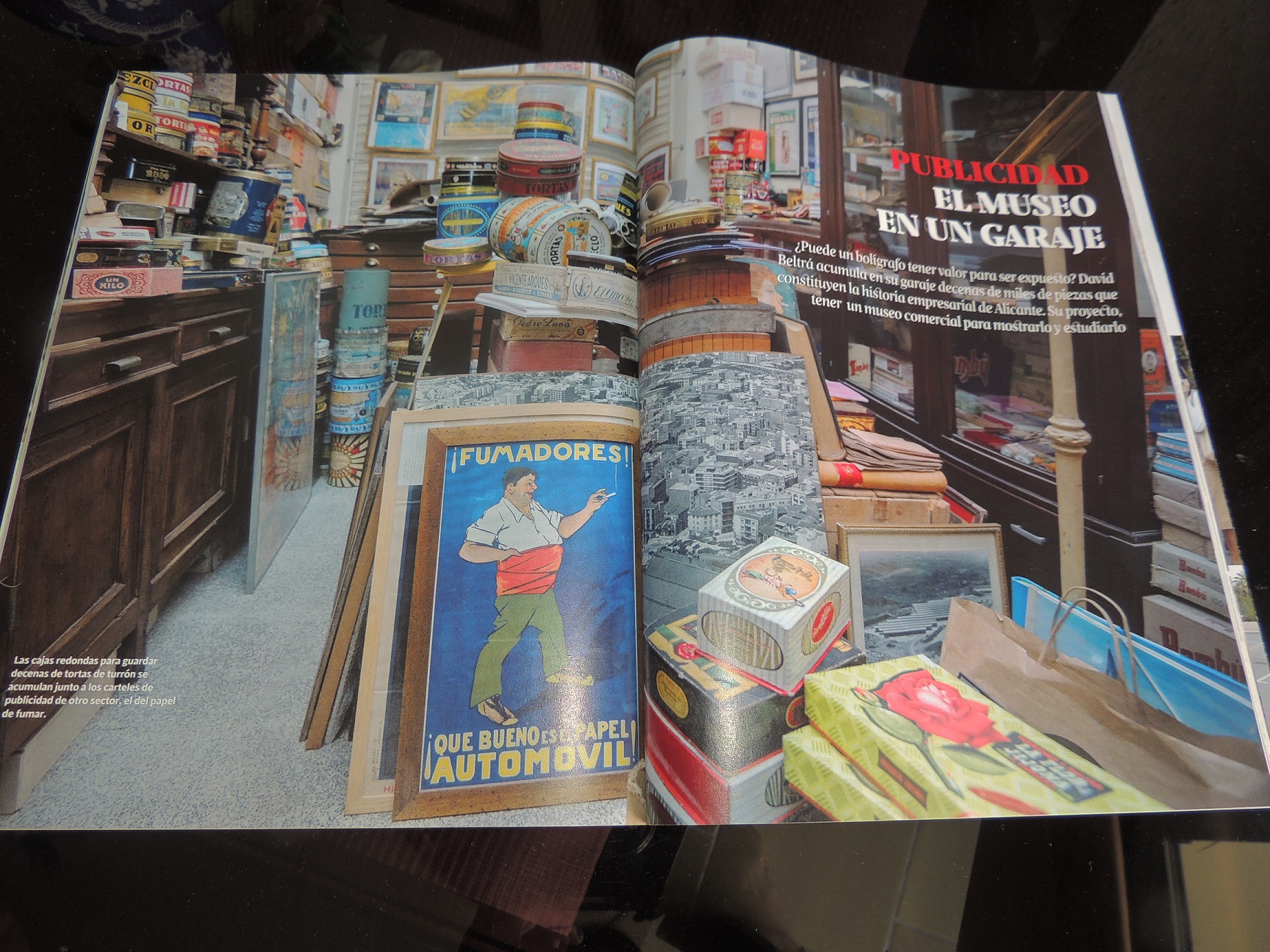 El suyo es un museo sin espacio oficial, que podría servir como historia de la publicidad o de etnología. Su ambición es que pronto lo tenga. De momento, en su ciudad están avanzadas las conversaciones para poder ocupar un lugar en el que desplegar las piezas de carácter más local. Pero su idea es que eso no se quede solo ahí. Le gustaría que en Alicante se mostraran todas esas piezas que conformaron ese pasado industrial. Aunque él prefiere referirse a su proyecto como el Museo Comercial, uno que rinde homenaje al «carácter fenicio» que, como recalca, históricamente ha tenido la zona.