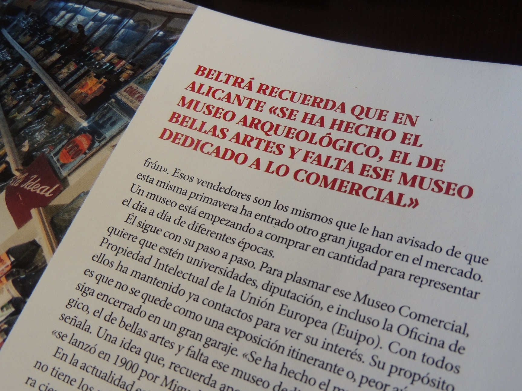 Aquello lo leyó Beltrá un día hacia el año 2000, una época en la que se había centrado en recopilar piezas originales de la prensa de su localidad natal. Y le encantó. La idea de un museo comercial se ha desarrollado en otras capitales, explica, como Salamanca, Sevilla, Barcelona y Melilla. Se hacía, continúa, como «un lugar donde exponer lo que se comercializaba y se hacía en zonas donde era difícil acceder, en las que se mezclaba la idea de comercializar con la de mostrar».