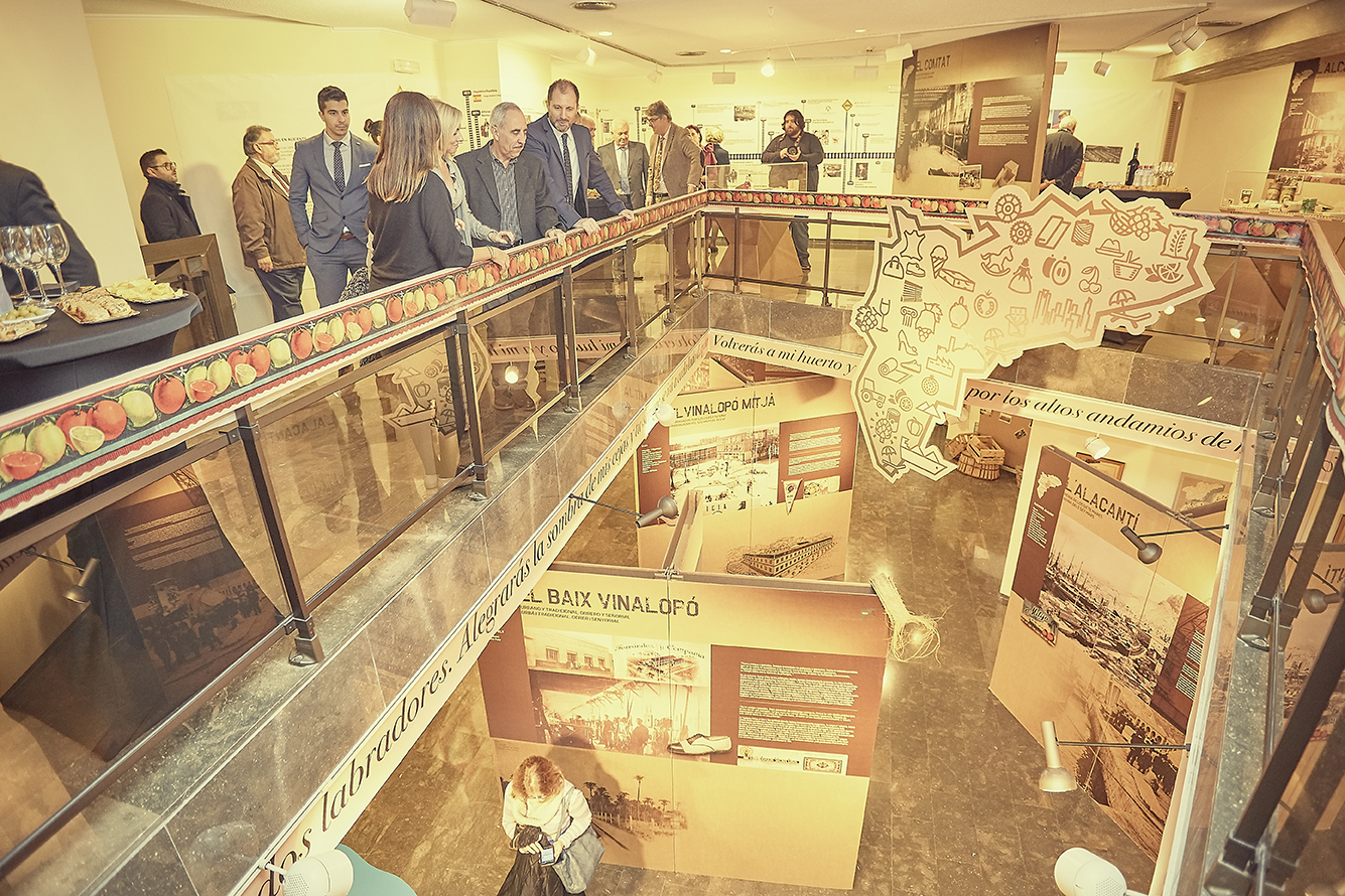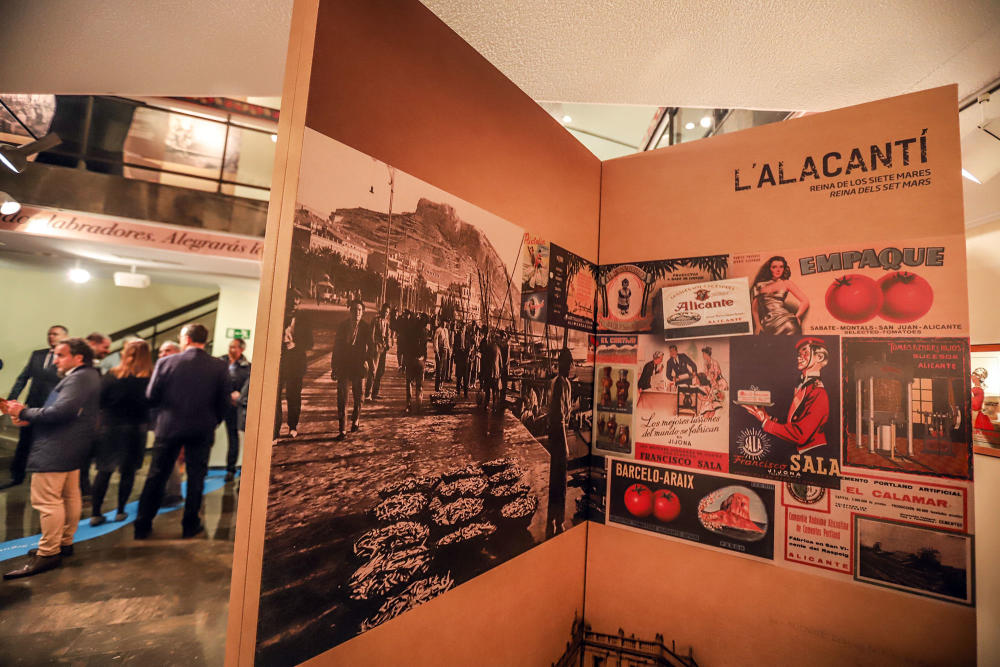 La muestra comienza su recorrido con la llegada del ferrocarril a Alicante en el año 1858 y, desde ahí, las piezas expuestas cubren las 9 comarcas alicantinas para mostrar las actividades económicas y empresariales que se han llevado a cabo desde entonces. Son más de 350 piezas del patrimonio comercial e industrial tangible apoyado en otras originales como envases, publicidad, facturas y cartas comerciales e iconografía, y otras 300 más reproducidas en los paneles representativos de cada territorio alicantino, que permiten conocer los sectores productivos más importantes de la provincia, entre los que se encuentran el calzado, el mármol o el heladero, para adentrarse en el sector agroalimentario que lidera la Vega Baja, y así lo recuerda un expositor de frutas y verduras, a modo de puesto ambulante, que da la bienvenida.