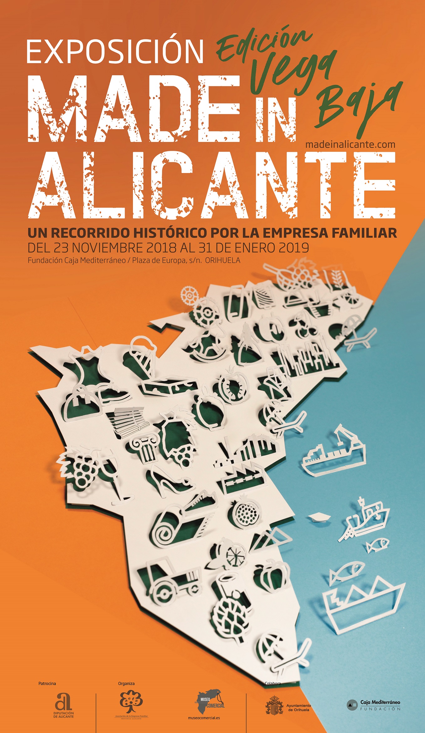 La exposición Made in Alicante, vuelve a visitar las principales ciudades de nuestra provincia, con el firme objetivo de recorrer las nueve comarcas alicantinas, gracias a la Asociación de la Empresa Familiar de Alicante, AEFA y a la Diputación de Alicante y en este caso con apoyo y colaboración del Ayuntamiento de Orihuela y la Fundación Caja Mediterráneo, con su sala de exposiciones oriolana.