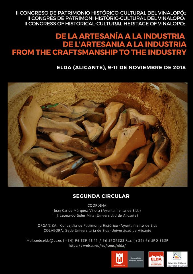 II Congreso sobre el Patrimonio histórico Cultural del Vinalopó: de la artesanía a la industria para valorar la riqueza del patrimonio vinculado a la industria en la comarca. El Ayuntamiento de Elda, desde la concejalía de Patrimonio Histórico y en colaboración con la Sede Universitaria de Elda de la Universidad de Alicante, ha organizado el II Congreso de Patrimonio histórico–cultural del Vinalopó.