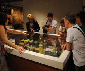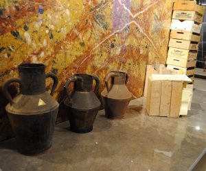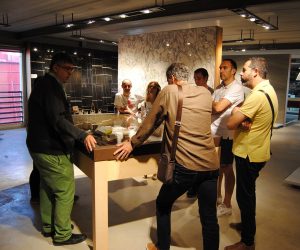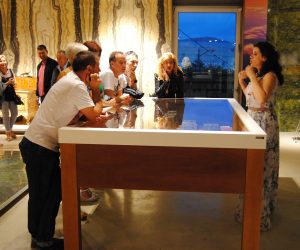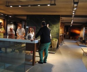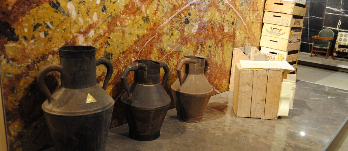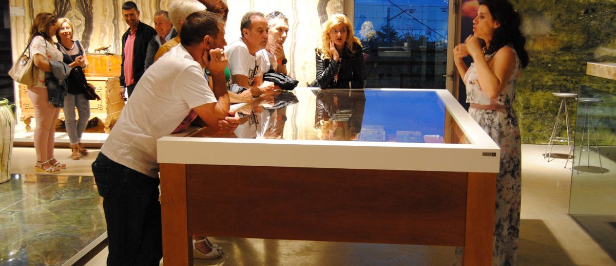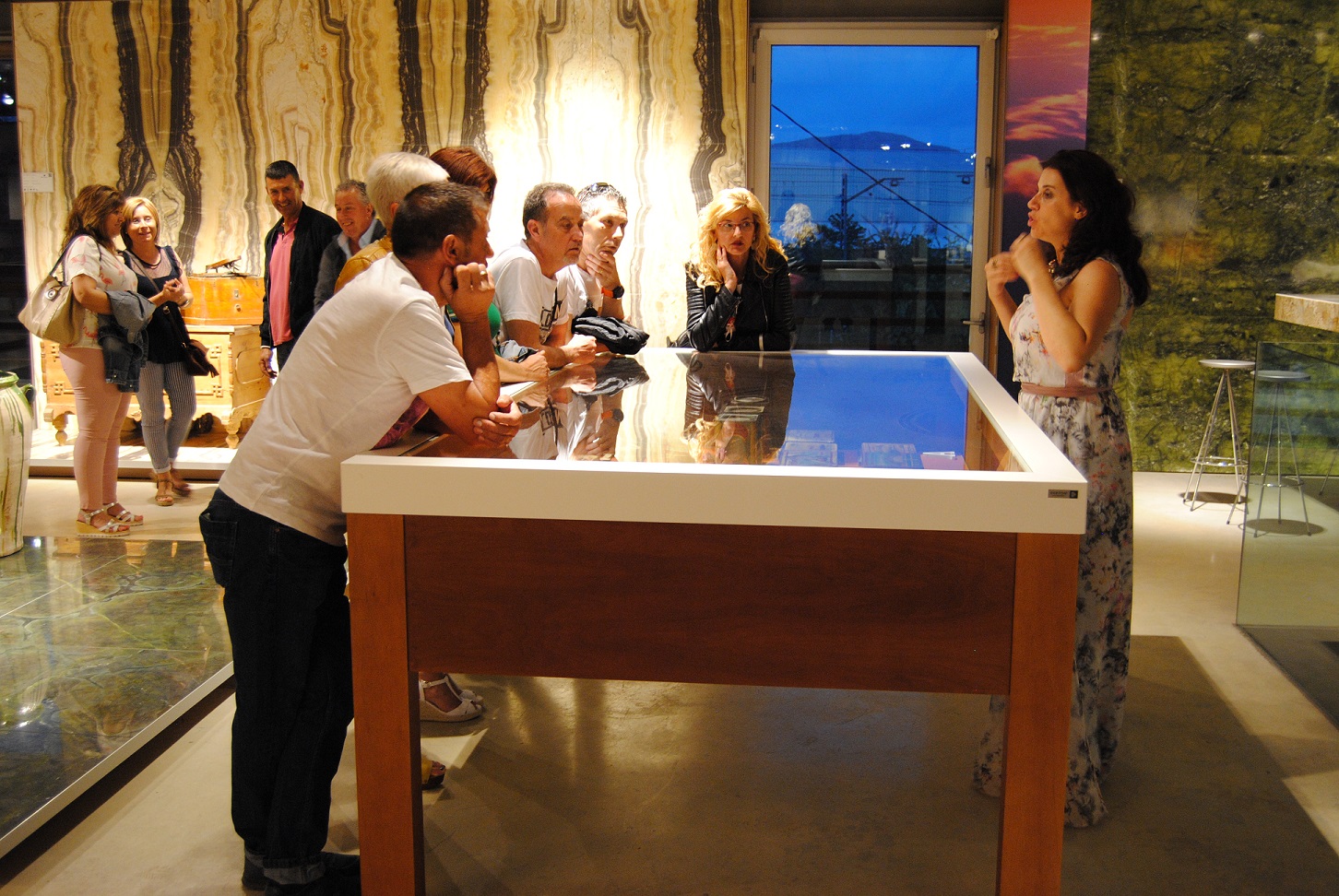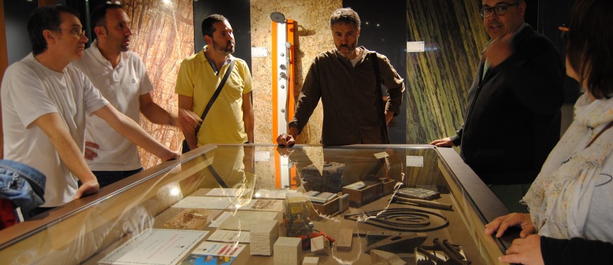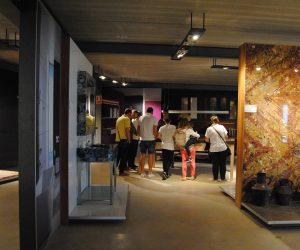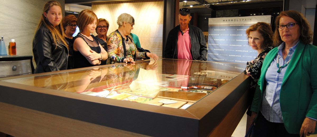 Instalaciones del Showroom de MarmolSpain en donde se exponen cuatro vitrinas dedicadas al MUAN – Museo Mármol, Uva, Azafrán de Novelda
