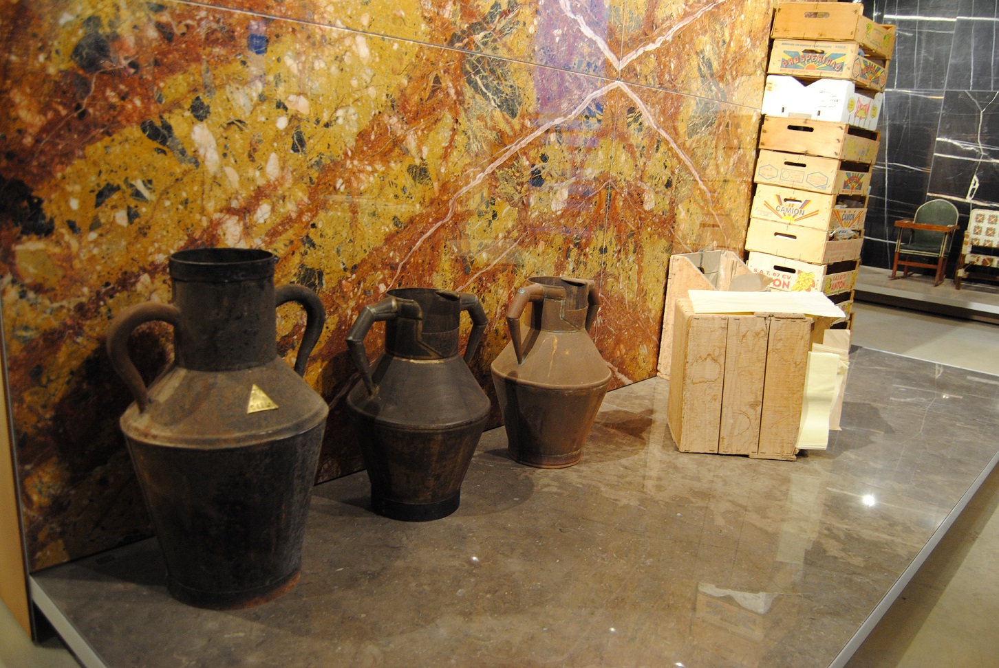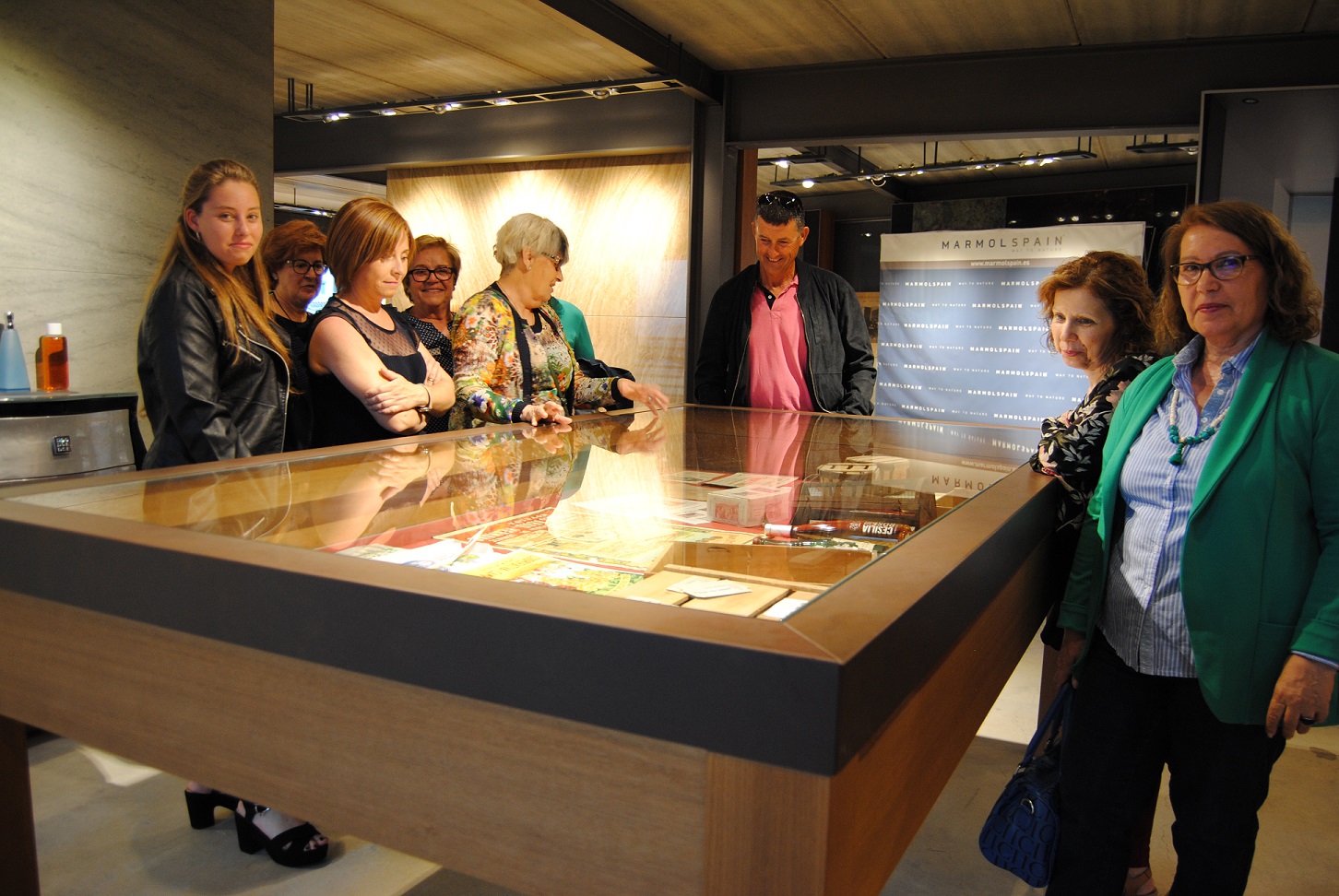 Instalaciones del Showroom de MarmolSpain en donde se exponen cuatro vitrinas dedicadas al MUAN – Museo Mármol, Uva, Azafrán de Novelda