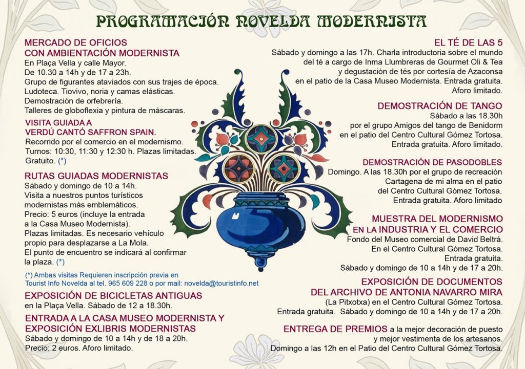 Con motivo de la Feria Modernista en Novelda, del 21 al 28 de octubre de 2017 tendrá lugar la exposición: