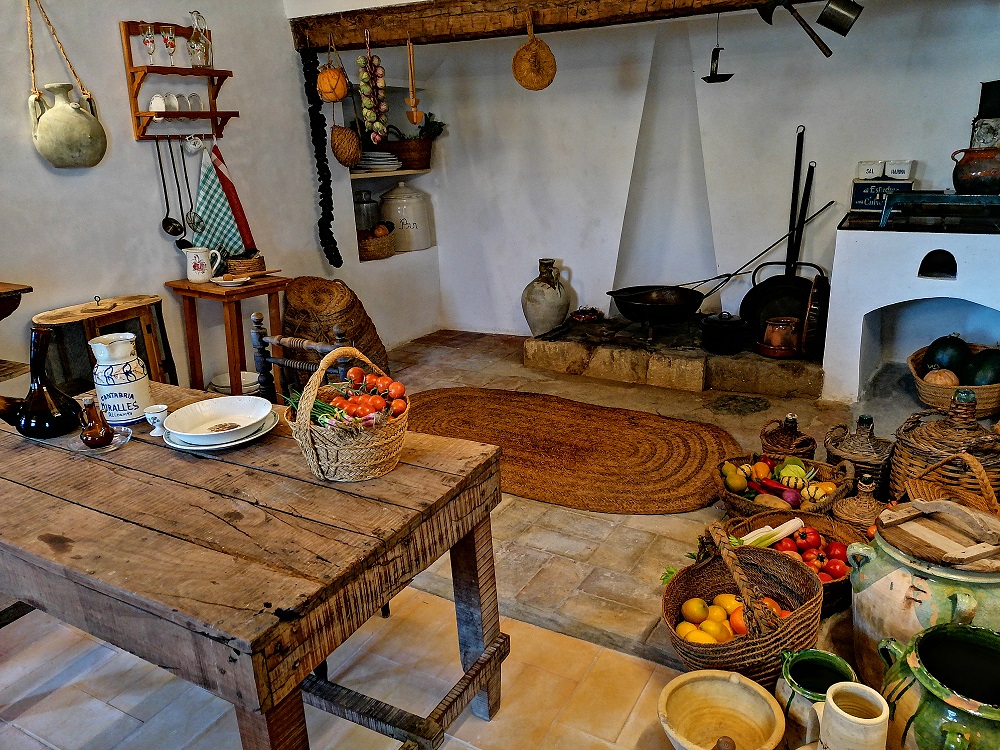Musealización de una cocina mediterránea de la primera mitad del siglo XX. Cocina del BIC Finca y Torre Ansaldo, Centro de Interpretación de L’Horta d’Alacant i la Música. Sant Joan d’Alacant. Fotografía de Pep Priscila.