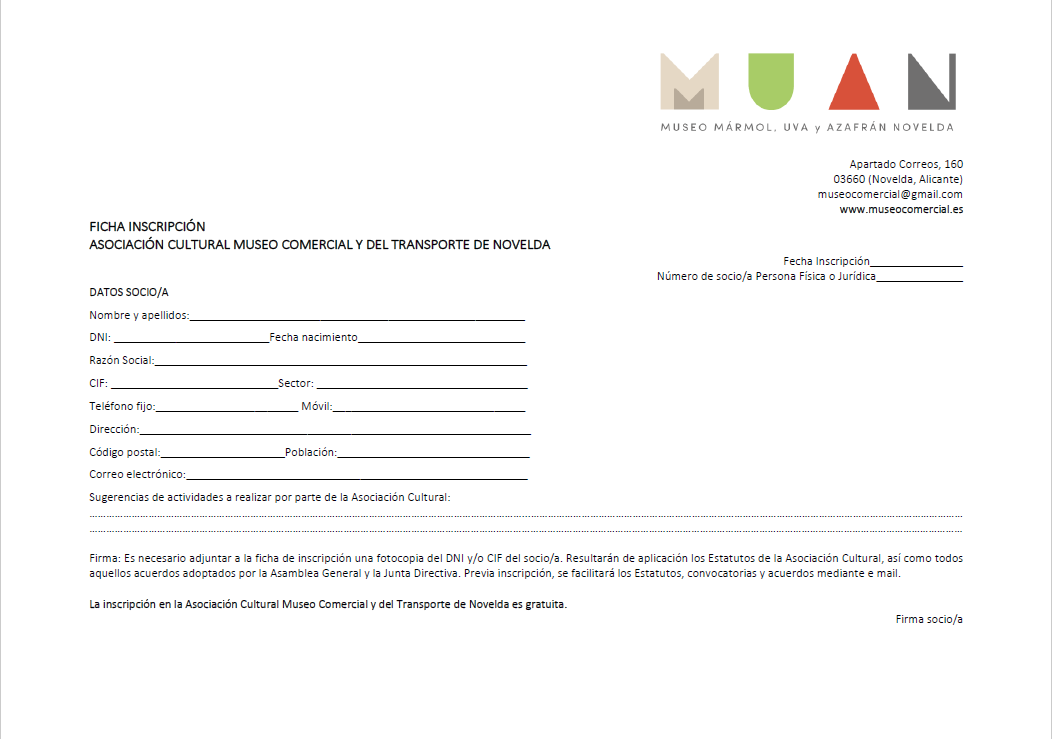 Ficha inscripción MUAN para persona física o jurídica