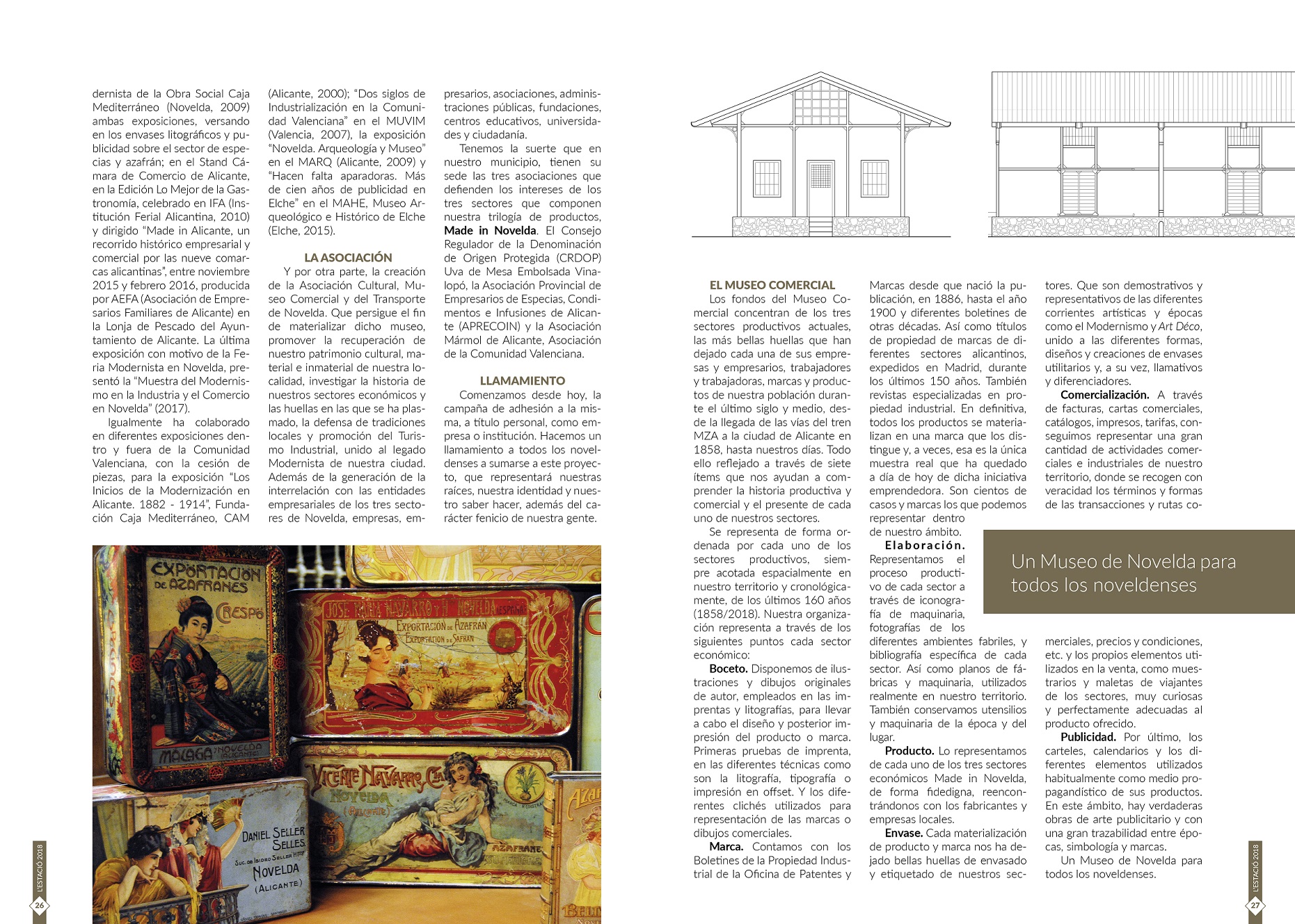 Y por otra parte, la creación de la Asociación Cultural, Museo Comercial y del Transporte de Novelda. Que persigue el fin de materializar dicho museo, promover la recuperación de nuestro patrimonio cultural, material e inmaterial de nuestra localidad, investigar la historia de nuestros sectores económicos y las huellas en las que se ha plasmado, la defensa de tradiciones locales y promoción del Turismo Industrial, unido al legado Modernista de nuestra ciudad. Además de la generación de la interrelación con las entidades empresariales de los tres sectores de Novelda, empresas, empresarios, asociaciones, fundaciones, administraciones públicas, centros educativos, universidades y ciudadanía.