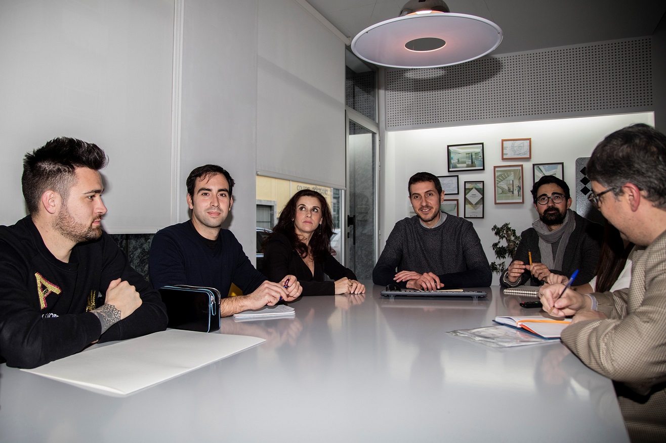 Equipo MUAN compuesto por Carlos Sánchez de LA ERRERÍA, David Beltrá, director del Museo Comercial, Angie Porcel, estudiante prácticas Máster Arqueología Profesional y Gestión Integral del Patrimonio de la UA y TFM sobre Turismo Industrial en Novelda, Verónica Quiles directora de proyectos del Museo Comercial, Rafa García de LA ERRERÍA, Charlie Abad, diseñador gráfico, Luis Navarro de LA ERRERÍA. Foto Ramiro