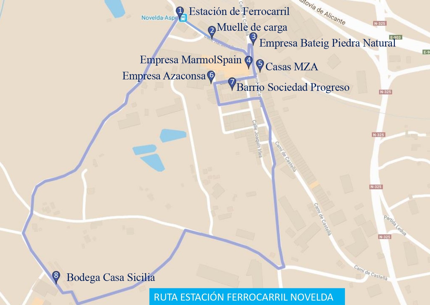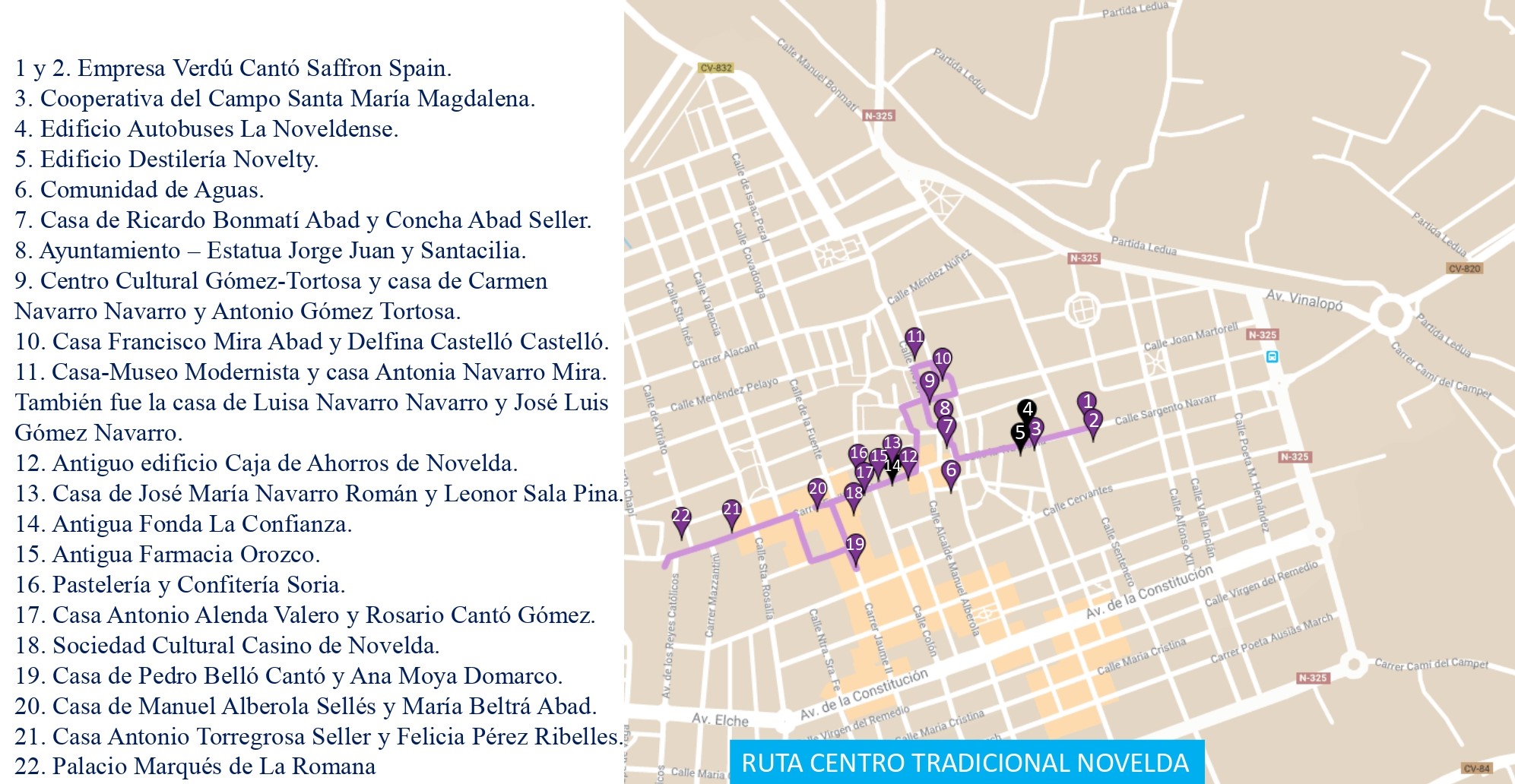 diseño de dos rutas dentro del municipio, la Ruta Estación y entorno de Novelda y la Ruta Centro Tradicional, separadas,