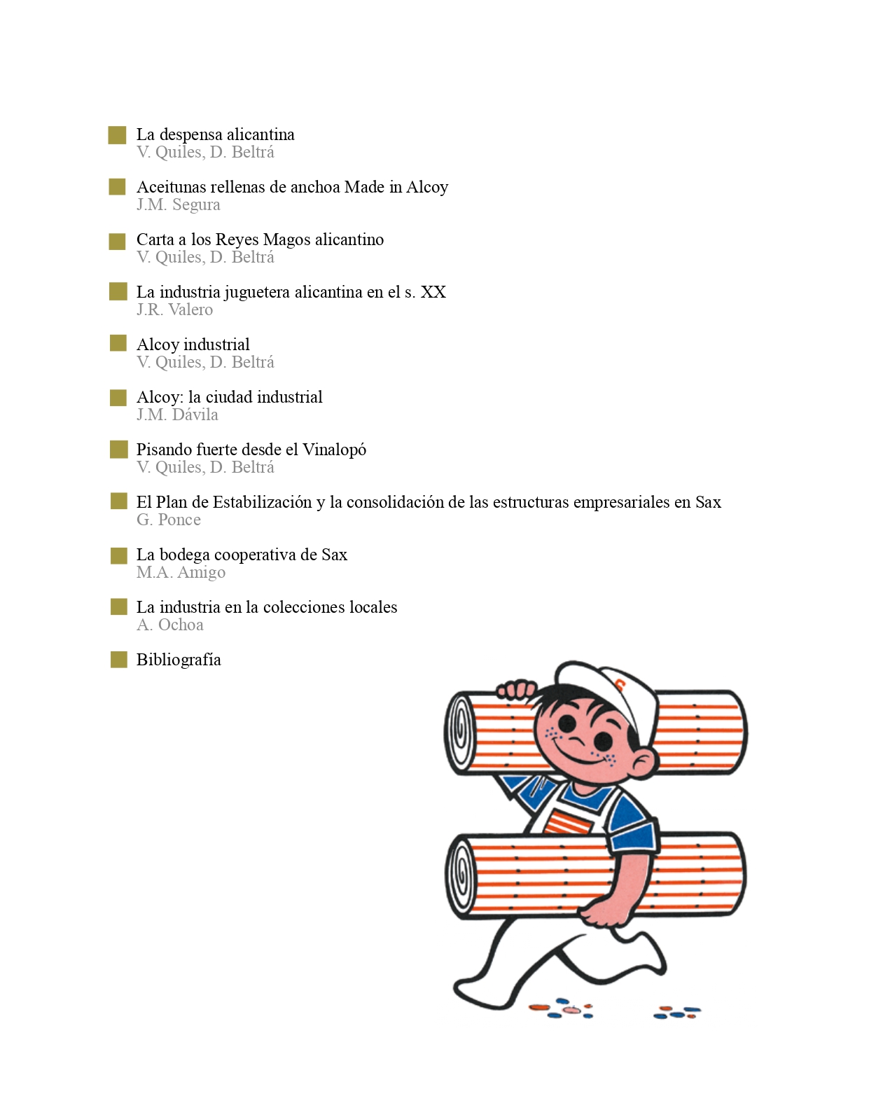 Beltrá Torregrosa, David; Quiles López, Verónica; Ponce Herrero, Gabino (coords.) (2019). Made in Alicante. Made in Sax. Alicante. Universidad de Alicante, Colección Picayo 12. ISBN 978-84-1302-059-4, 90 p.
