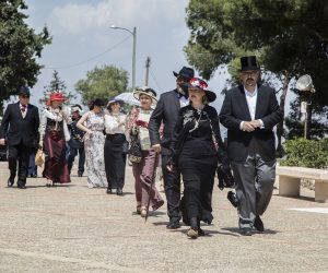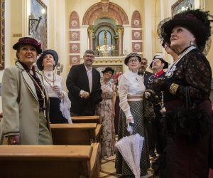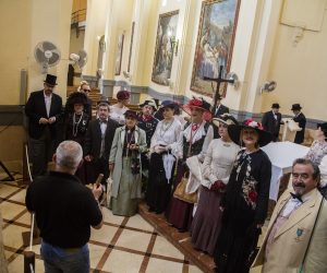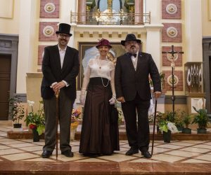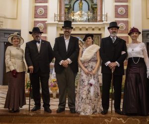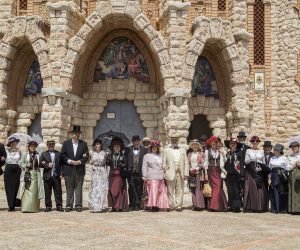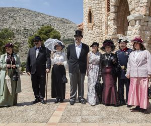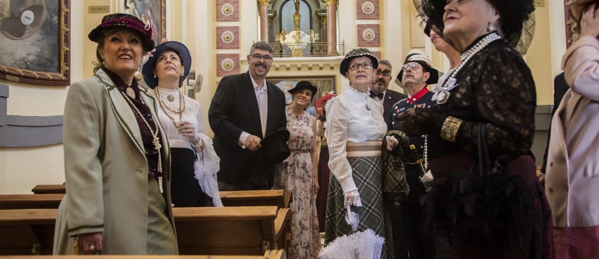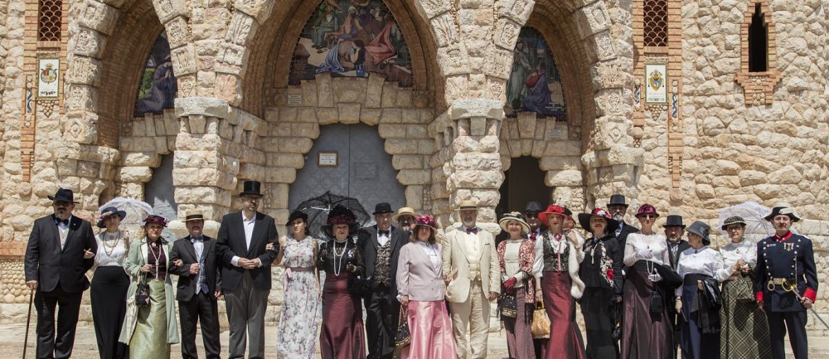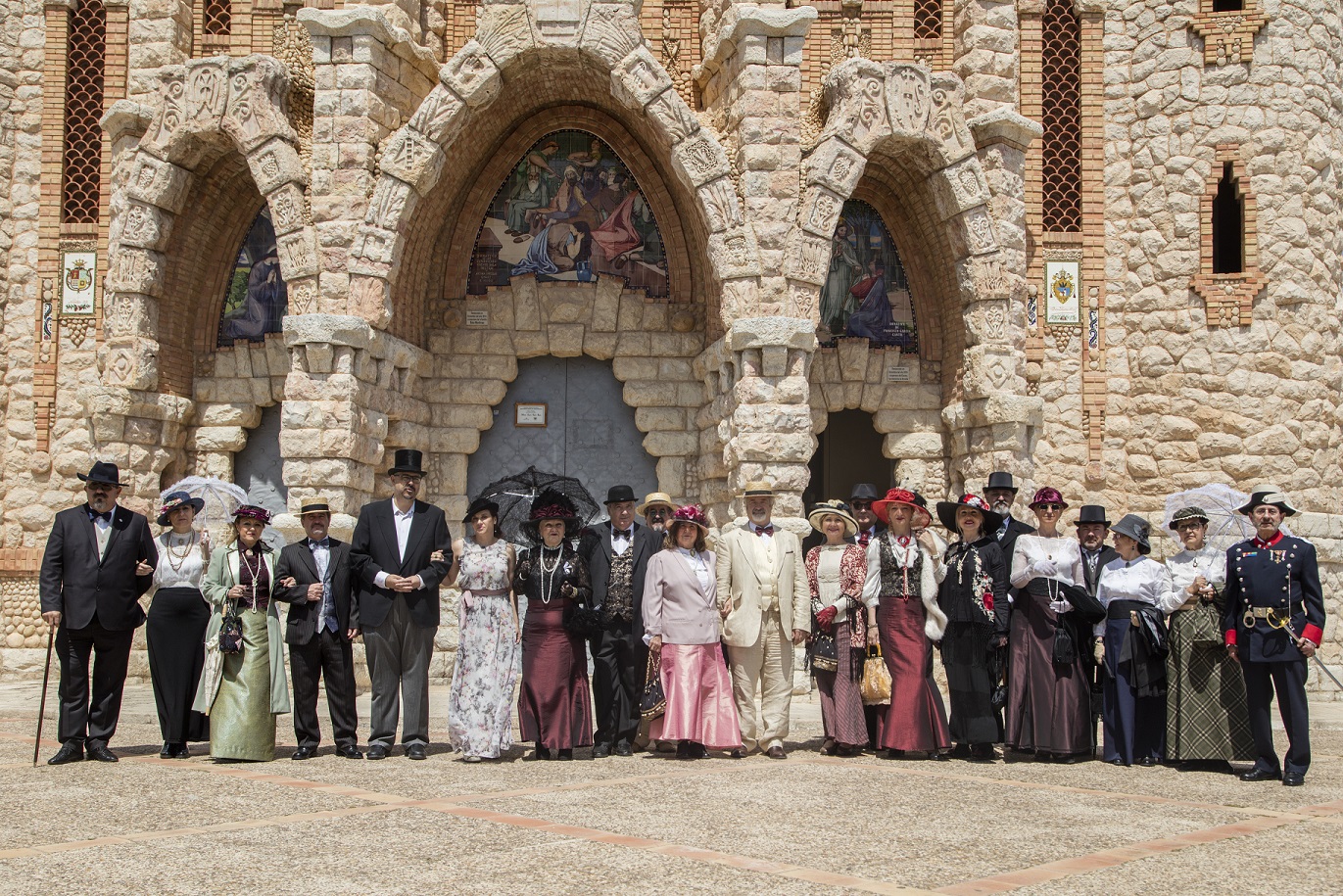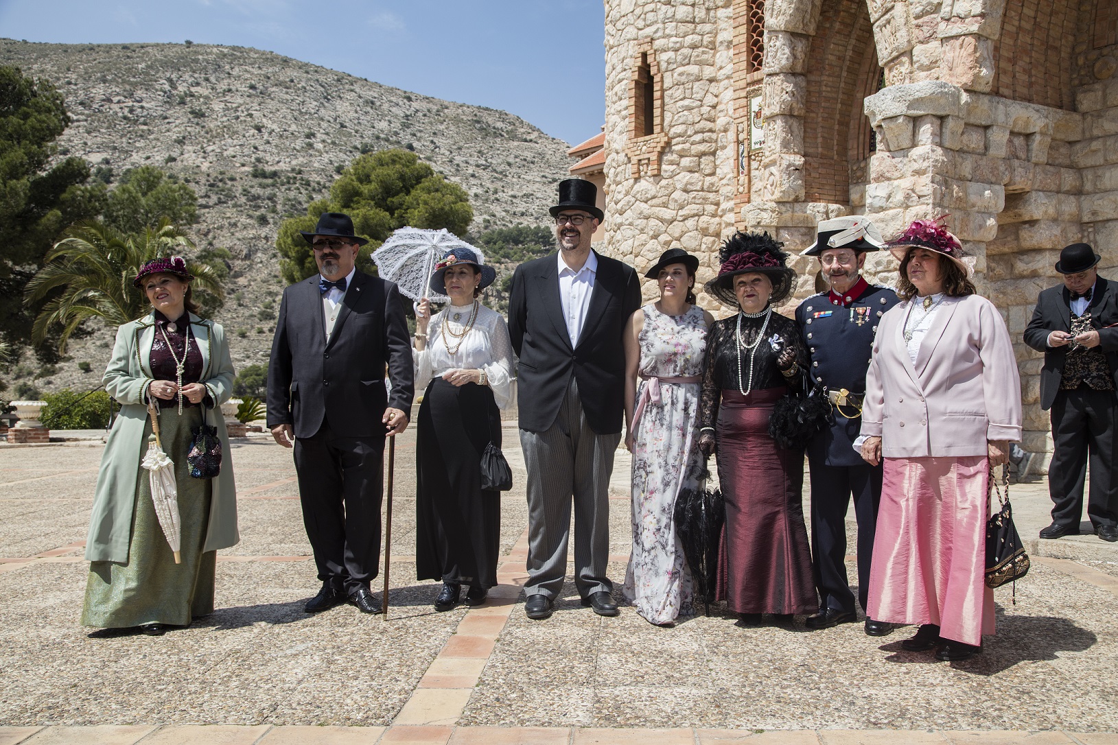 Componentes de la Asociación Cultural Amigos del Modernismo de Alcoy, Asociación Cultural Los Modernistas de Cartagena de Levante y la Asociación Cultural Museo Comercial y del Transporte de Novelda en el Santuario de María Magdalena (Novelda, Alicante). Foto Ramiro