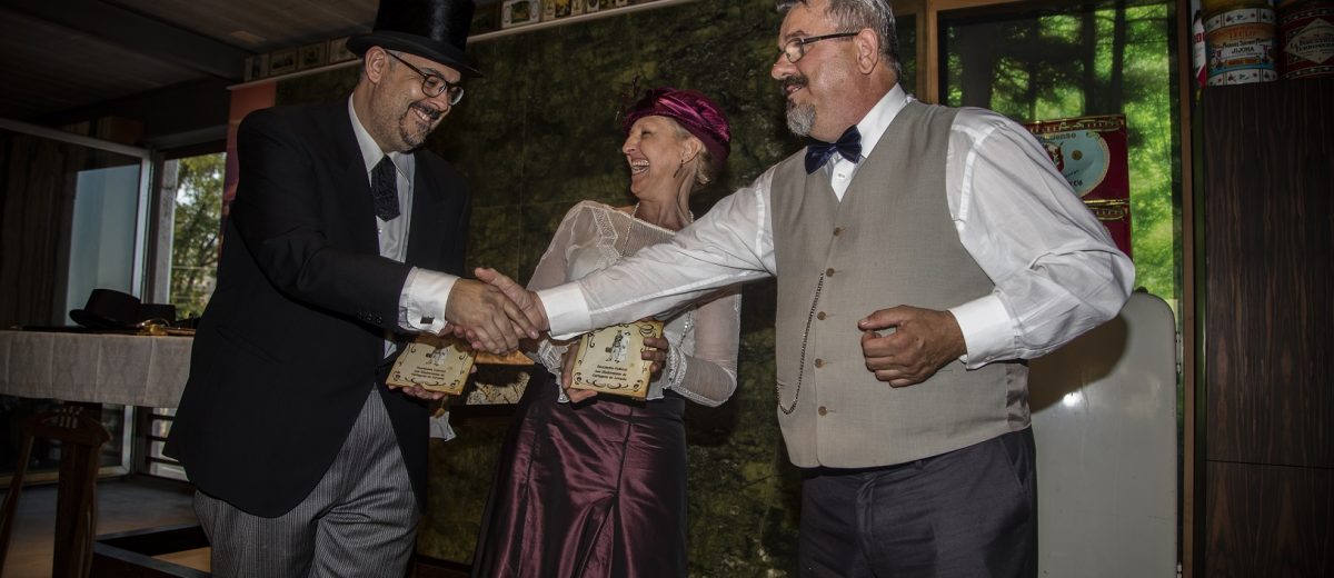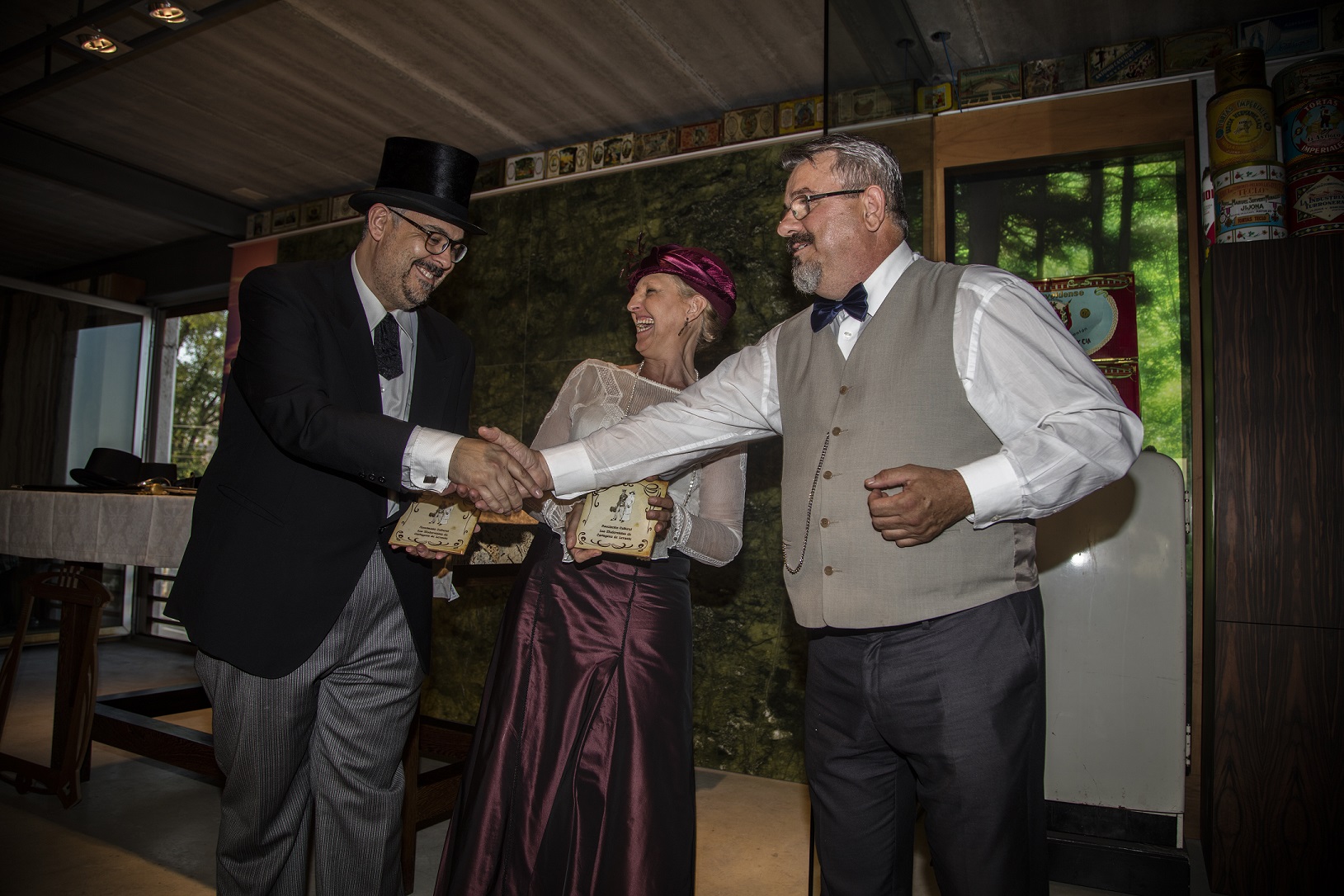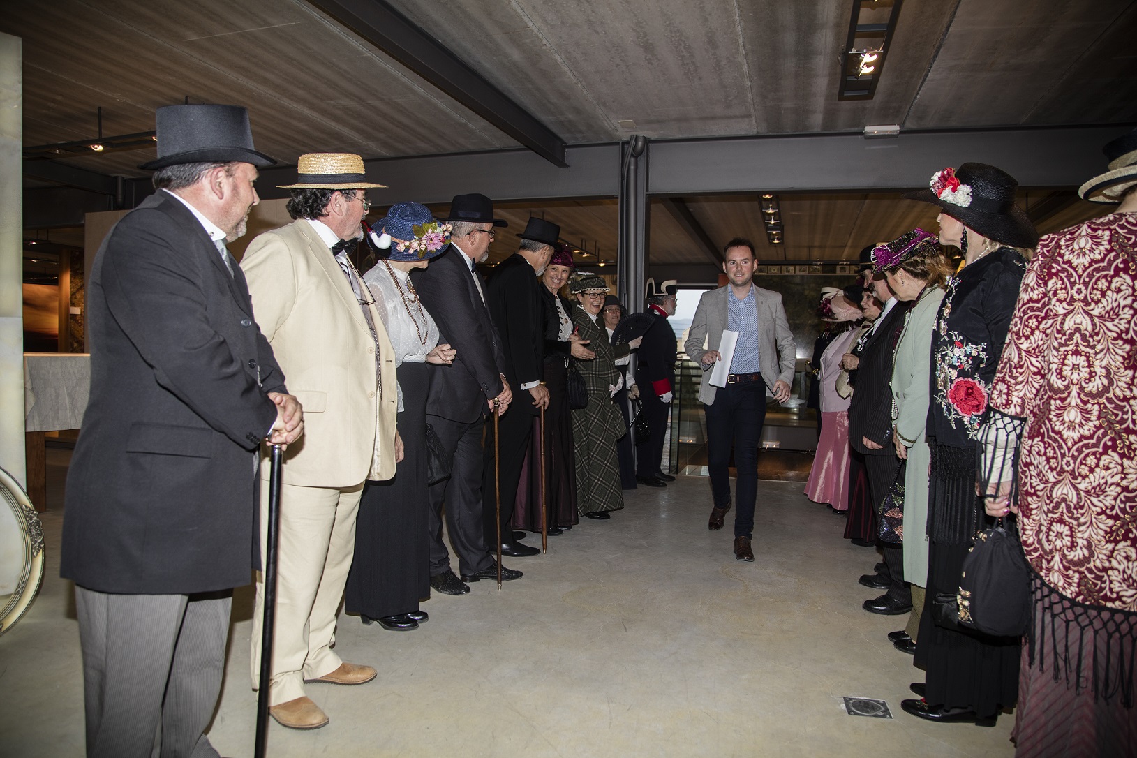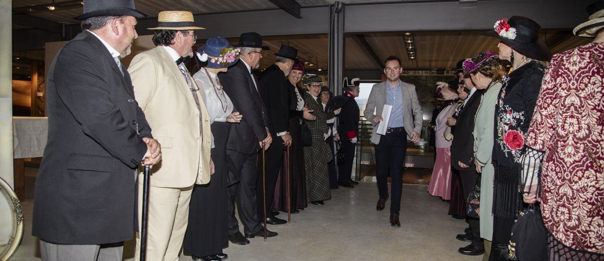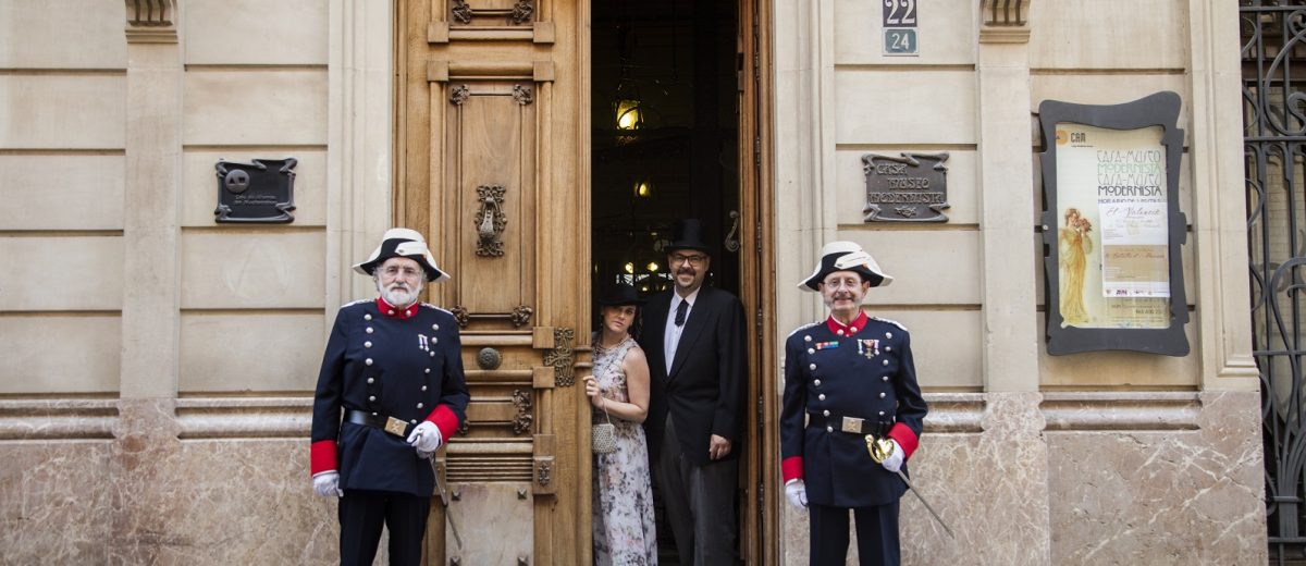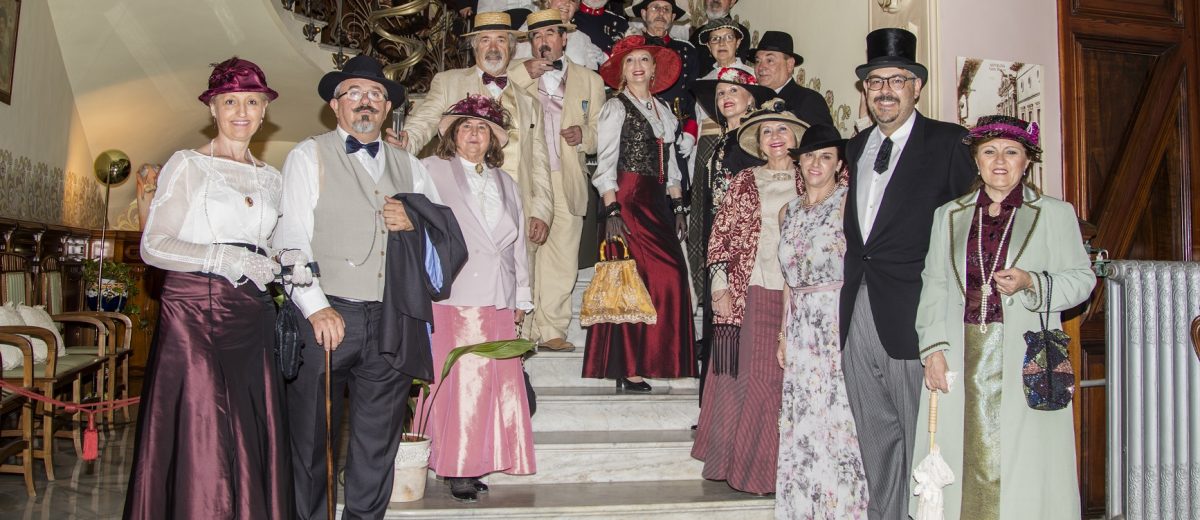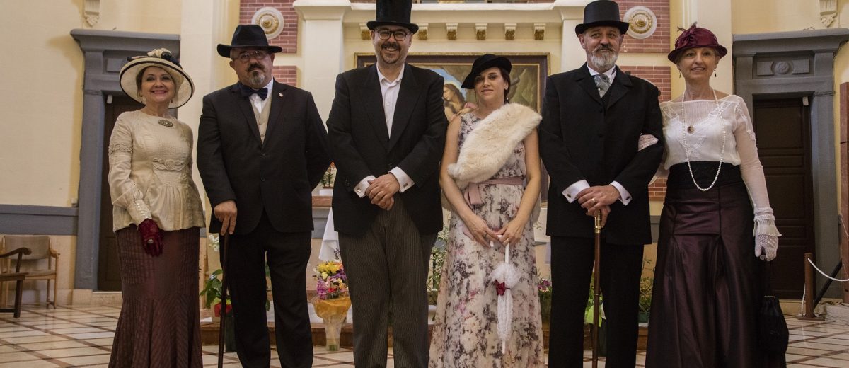 El pasado 28 de abril acudieron un total de 25 amigos vestidos de época modernista, correspondientes a las juntas directivas de las Asociación Cultural Amigos del Modernismo de Alcoy, Asociación Cultural Los Modernistas de Cartagena de Levante junto con la Asociación Cultural Museo Comercial y del Transporte de Novelda.