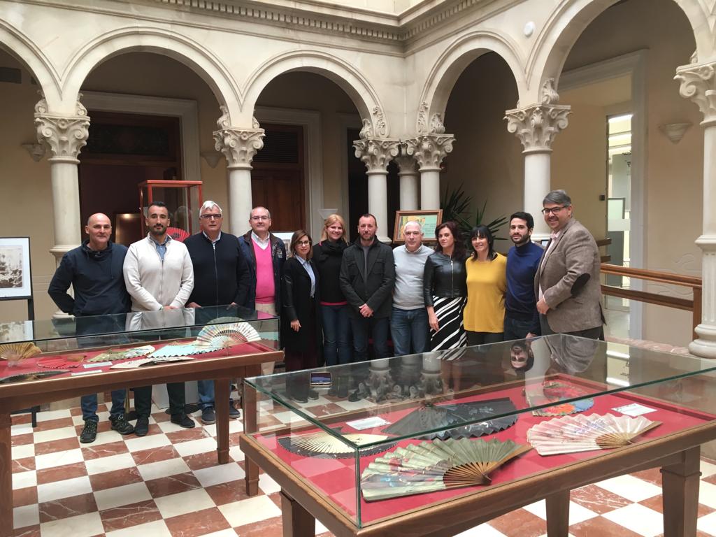 Juan Ramón Doménech y Gerardo Hurtado de la Asociación Comerciantes de Novelda; Raimundo Penalva como presidente y Javier Navarro como gerente de la Asociación Provincial de Empresarios de Especias Condimentos e Infusiones de Alicante (APRECOIN), Beatriz Rocamora, gerente DO Uva Embolsada del Vinalopó, Begoña Mayor, técnico en Turismo del Ayuntamiento de Novelda, Paco Sepulcre, concejal de Turismo, Armado Esteve, alcalde de Novelda, Verónica Quiles, del MUAN, Encarni Abad, secretaria de la Asociación Mármol de Alicante de la Comunidad Valenciana, Francisco Javier Cantos, Concejal de Urbanismo y David Beltrá, impulsor del MUAN
