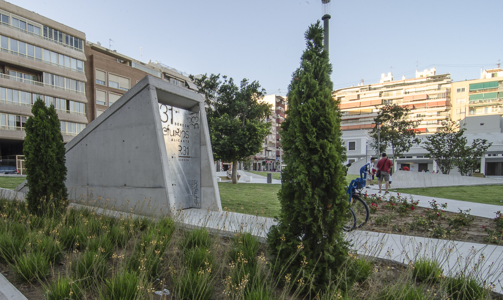 Plaza Séneca y Refugio R31 Séneca (Alicante). Diseño puertas Rocamora Arquitectura. Foto de Miguel Ángel Cabrera.