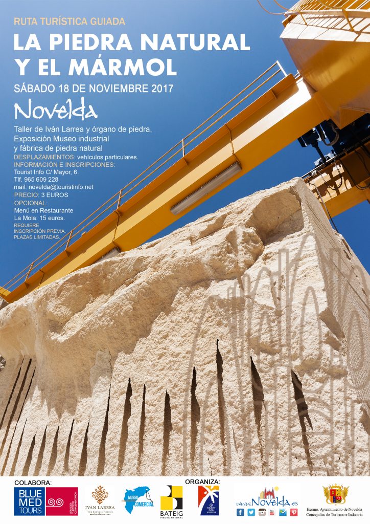 Este sábado, 18 de noviembre, tendrá lugar la Ruta Industrial que realizará un recorrido guiado por una empresa de piedra natural, la exposición «Los pilares industriales» del Museo comercial, el órgano de mármol y el taller de Iván Larrea. La actividad está organizada por la Concejalía de Turismo del Ayuntamiento de Novelda y tiene un coste de 3€ por persona