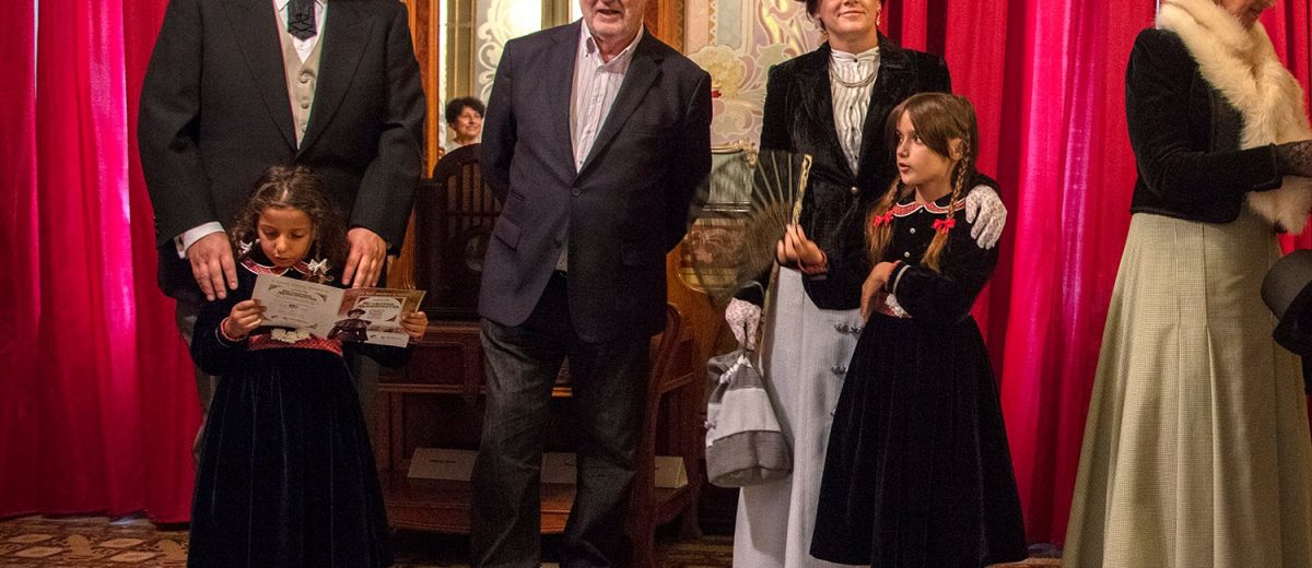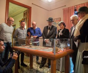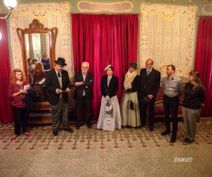 Inauguración de la Exposición Retratos Modernistas en la Casa-Museo Modernista de Novelda. En la foto, señora de Enric Ruscalleda, Concha Navarro, arqueóloga de Novelda, Enric Ruscalleda, restaurador de la Casa-Museo Modernista, Merxe Navarro Beresaluce, gerente de la Casa-Museo Modernista de Novelda, el comisario David Beltrá, Luis Boyer, presidente de la Fundación Caja Mediterráneo, la comisaria Verónica Quiles, la presidenta de la Asociación Cultural Amigos del Modernismo de Alcoy, Victoria Romero y su marido, Ramón Rodríguez, el concejal de Turismo, Paco Sepulcre, la concejal Maribel Becerra, el coleccionista Ramón Llorens, David Miralles y José Luis Pellín, archivero municipal y las hermanas y coleccionistas Antoñita y Fini Deltell «Zaragosseta». Foto Ramiro