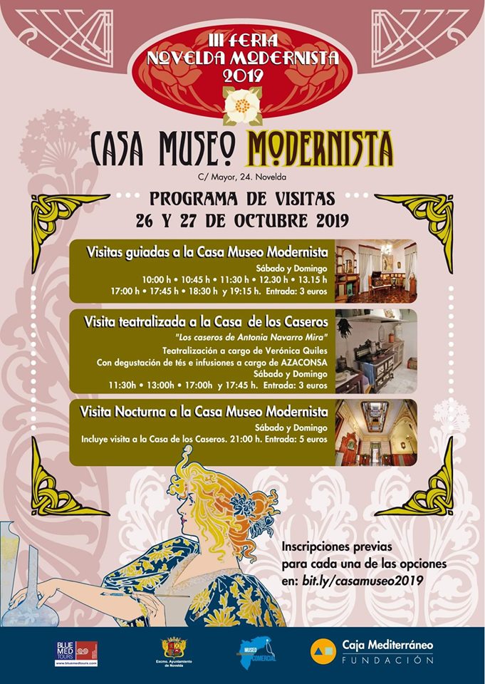 Recorridos guiados por el Centro Cultural Gómez-Tortosa, en los que, según señaló Daniel Andrés, arqueólogo del Museo Histórico-Artístico de Novelda, “se explicarán datos históricos del edificio, sus partes y elementos relevantes que tienen una historia que contar”, y las visitas a la Casa-Mira, de propiedad privada, completarán una visión global del patrimonio modernista en Novelda que, como aseguró el representante de BLUEMED TOURS, Francisco Díaz, “es un punto importante en la Red Modernista Europea”. Díaz invitó a noveldenses y visitantes a descubrir la Casa Mira, “una casa que ha estado muy viva hasta hace muy poco tiempo y en la que todavía se puede descubrir esa alma en la decoración de toda la vivienda”.